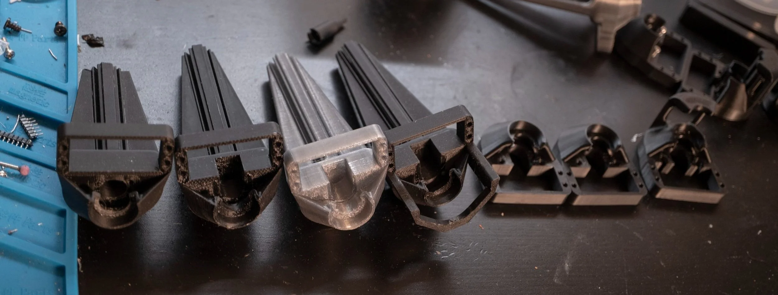 Accompanying the height gradient of the vertical extrusions, I also designed three versions of the housing, the flat is for the first three rows; the 45-degree is for the fourth row; and the 90-degree is for the fifth row.
