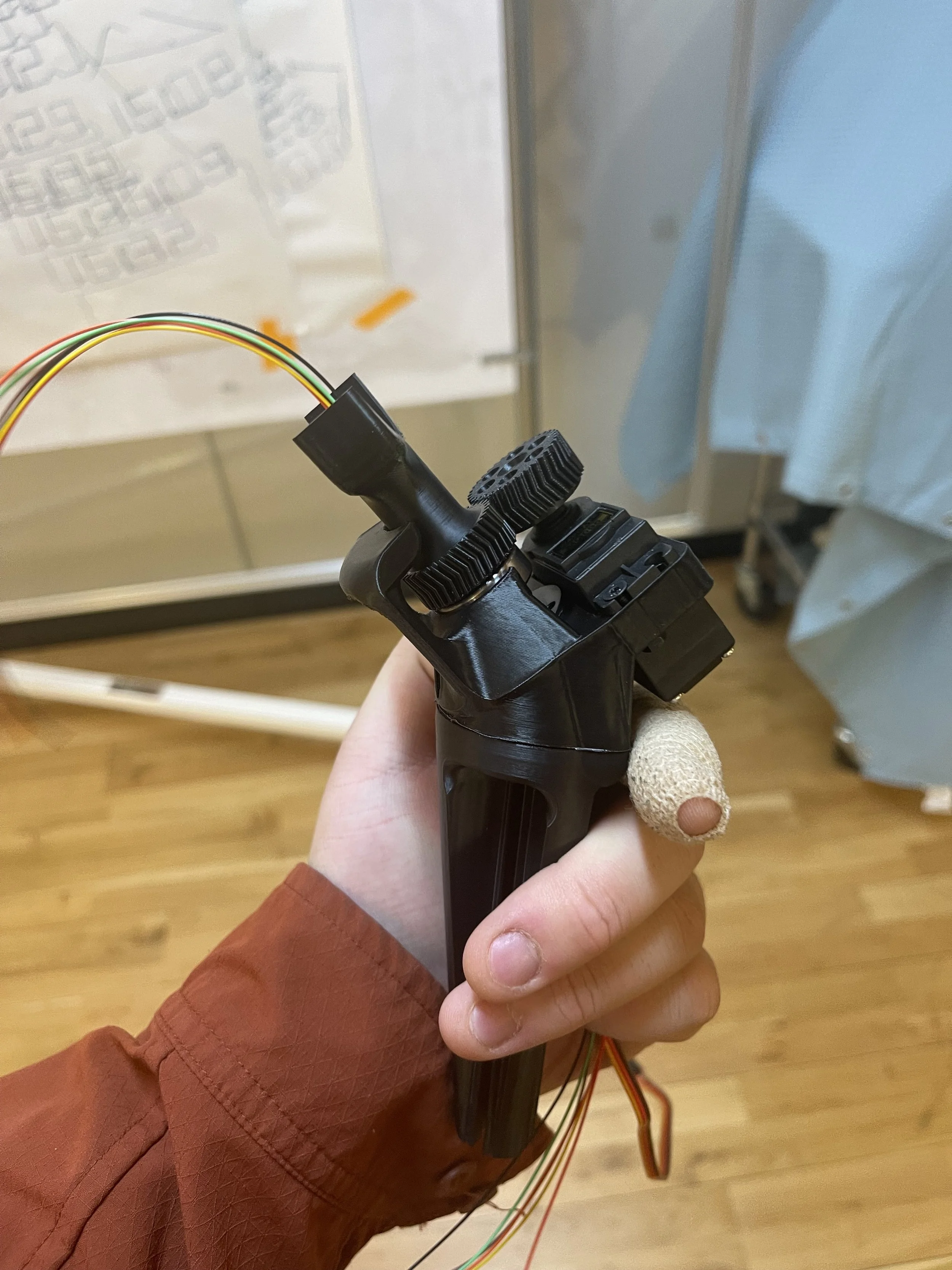 An upper part that houses the servo with gear, slip ring with wires, bearing, and the geared tube holder that’s holding the tube