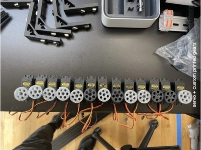 We landed on using DMX to control the servo motors because we believed it makes the project’s overall construction more efficient as well as simpler by using one single protocol to control both the lights and motor networks via Touchdesigner.